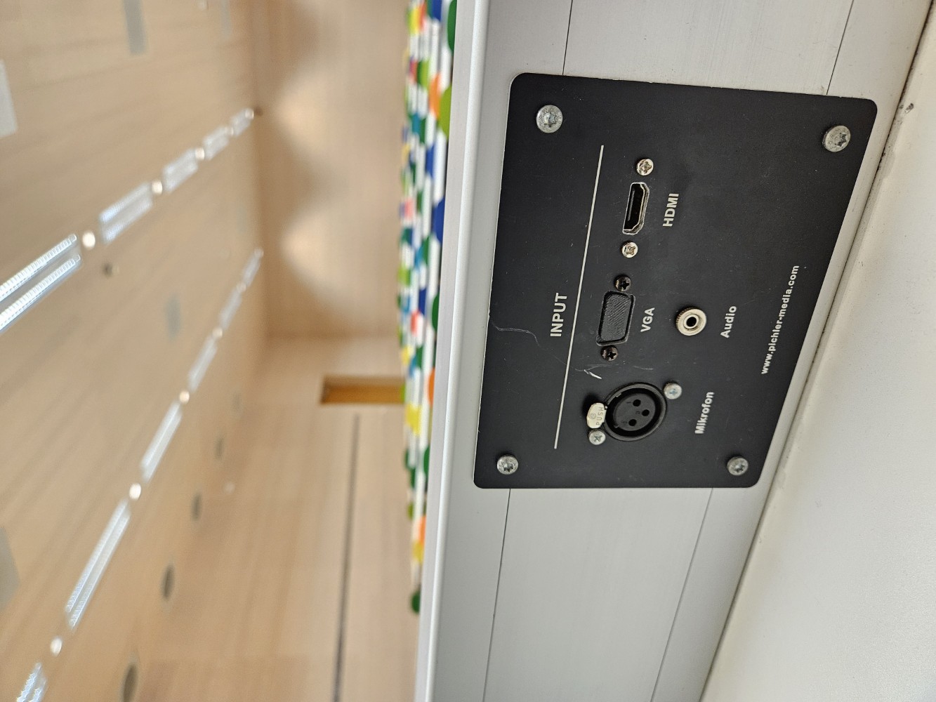 am Pult, HDMI; Audio Klinke 3,5, Mikrofon